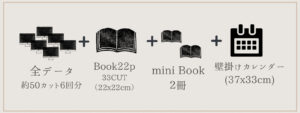 - 全データ(50カット※x6回)+オリジナルブック+ミニブック2冊+壁掛けカレンダー