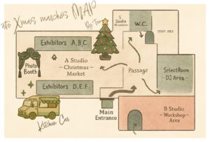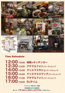 - 内容:クリスマス雑貨・オーナメント販売、ワークショップ、DJタイム ほか